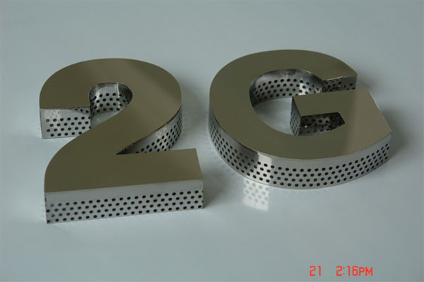 制作工藝:不銹鋼外露字把整張的不銹鋼在機(jī)床上沖孔,再根據(jù)字形切割出來(lái),焊好立體邊,打磨,拋光處理,(也有做烤漆處理的)再把LED燈裝在沖好的不銹鋼孔上。不銹鋼孔采用數(shù)控機(jī)床沖孔,字形切割采用高精度等離子切割,立體邊使用業(yè)的勾槽機(jī)勾角處理,并經(jīng)過(guò)門(mén)打磨拋光處理,不銹鋼字看起來(lái)奕奕生輝。