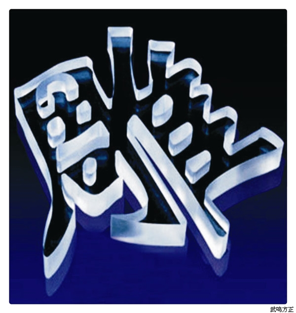 制作工藝:水晶字貼金屬片由水晶板和金屬片構成。底部的水晶板用8mm厚度的透明水晶板經(jīng)過激光切割出字形,上面的鏡面不銹鋼則用等離子切割機切割出字形,再以有機藥水固定完成。