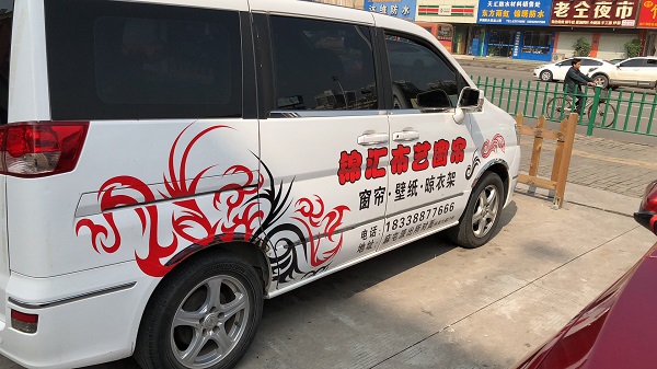彩噴類車貼是采用大型高精度噴繪設備在用車貼材料上噴繪出設計好的圖案,然后人工裁減好再直接貼在車身表面達到裝飾目的。這種車貼不受圖案限制,所有電腦顯示器上看到的圖案都可以高保真的制作出來,不像拉花類車貼受到漸變色或少見殊顏色的限制。這種車貼費用較低,普通車友都能承受,使用過程中如果輛因擦刮損壞到車貼部分也會不影響保險賠償,補救圖案也只需要重新定做損壞的部分而已。